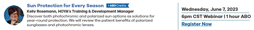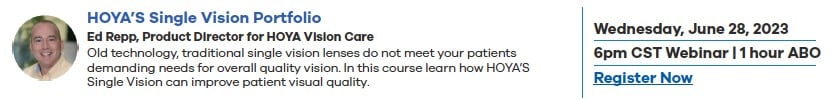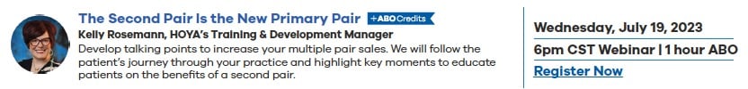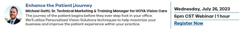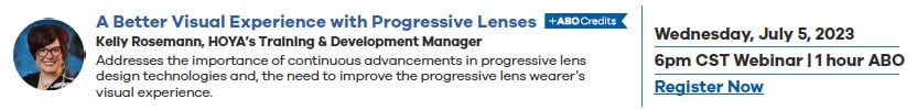 Four sessions offer ABO credits to advance ECP attendees’ continuing education. HOYA’s Visionary Alliance™ members will earn 200 extra points for each webinar attended. Each will start at 6:00 p.m. CDT, and recordings will be available to all members who cannot attend live.
