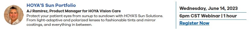 LEWISVILLE, Texas, Ophthalmic lens technology leader HOYA Vision Care announces its ‘Summer Learning Series’ of free webinars for eye care professionals (ECP) and their practices. From June 7 through July 26, 2023, HOYA will host eight specially designed courses hosted by in-house product and training experts. ECPs can register today for individual or all the webinars.